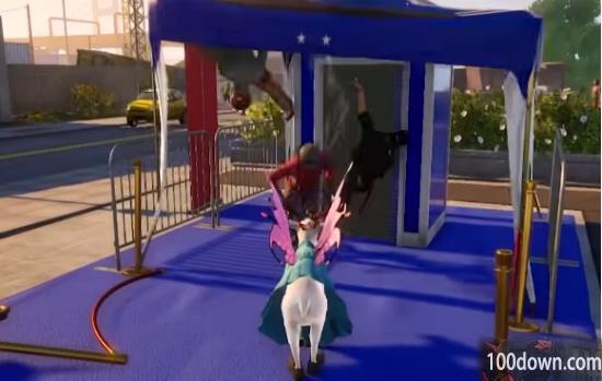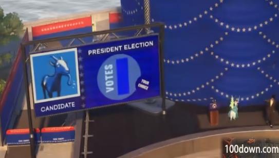 1、玩家首先要找到竞选总统的位置,站上竞选台,可以看到山羊出现在大屏幕上;