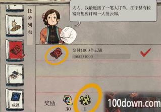 2、这个任务要求是需要交付足够数量的【云锦】即可得到江宁县地图;