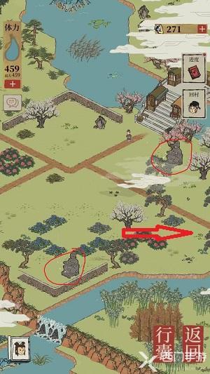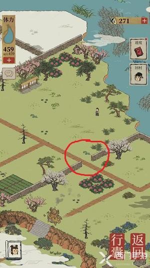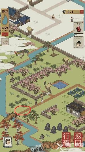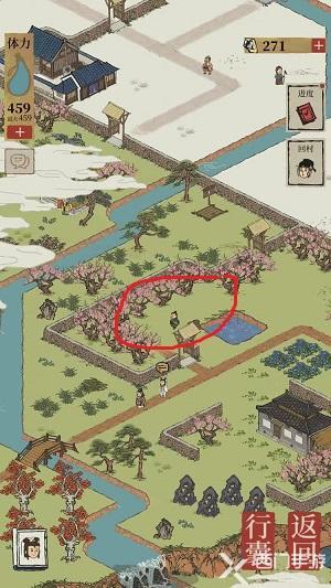 1.又见桃花村的铲子道具需要我们去小树林里面寻找才可以,小树林的方位在地图的下面;