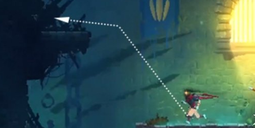 3.再根据下面的路线先跳到左边上方的墙壁上,然后往右边二段跳过去;