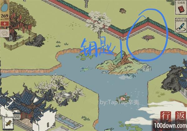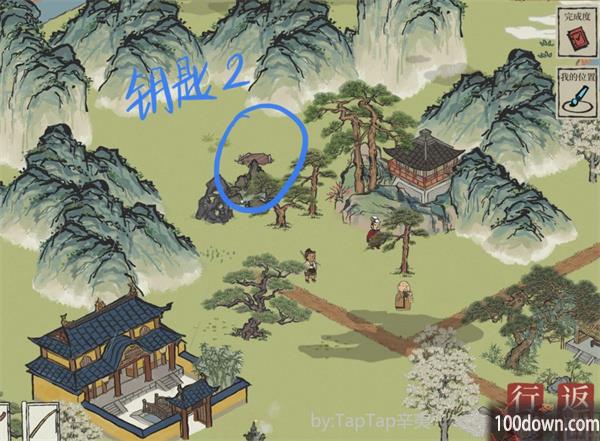 1、钥匙一:在梅园后面,金刚楼后面的玉兰树旁,需要砍树两次才可以拿到;