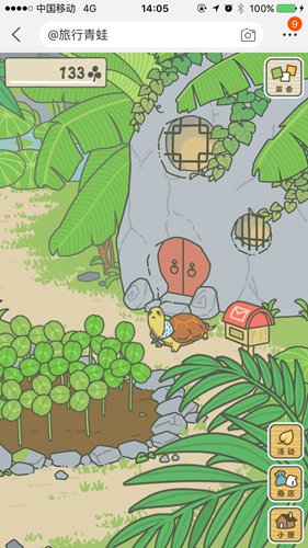1.如果玩家发现了一个小乌龟来到我们的屋子门前,可以使用土特产来招待青蛙朋友小乌龟;