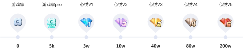 tips:心悦会员等级以玩家过去365天(含计算日当天)获取的成长值总和为依据,当成长值达到等级要求时将自动成为对应等级的心悦会员: