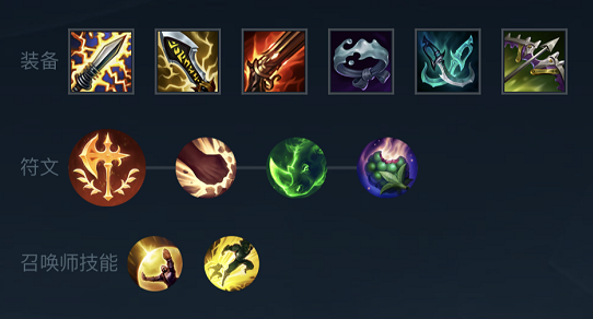 1.装备:斯塔缇克电刃+无尽之刃+疾射火炮+水银饰带·贪婪之靴+幻影之舞+凡性的提醒