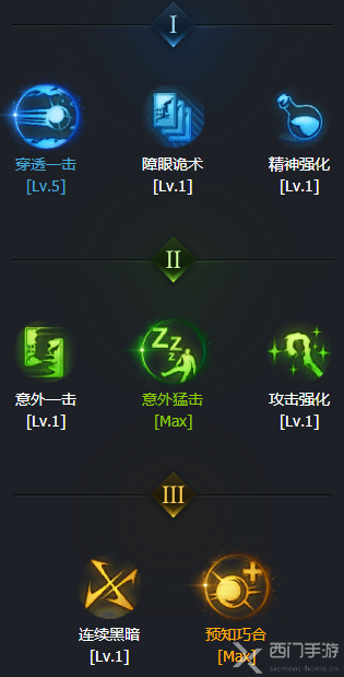 Ⅰ级:敏捷动作、攻击要害、魔力调节