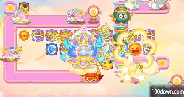 第5波左边月亮和太阳搭配,可以极大减轻兔子压力;攻略均少用群攻炮塔,如果不想打的极限,请根据自身能力增加群攻炮塔数量,群攻炮塔越多,周赛越简单,上限越低;
