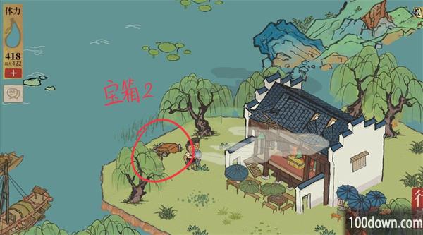 4、宝箱一:宝箱一需要点击马车去月老饲,跟着任务可以去到,在月老饲深处的柳树林中可以找到;
