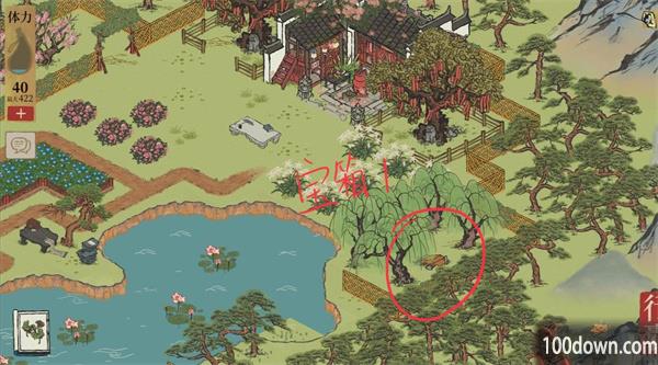 2、钥匙二:在湖边的柳树林中,钥匙二被三棵柳树所挡住,可以砍掉其中一棵树就可以找到;