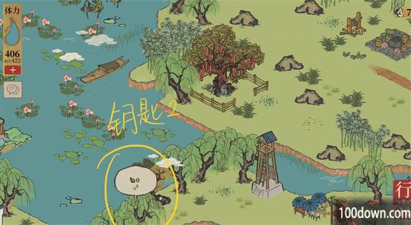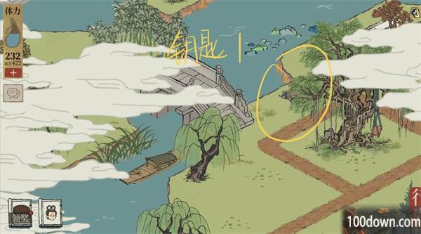 1、钥匙一:在一座小桥的和大树的中间,如下图位置,点击可以找到钥匙一;