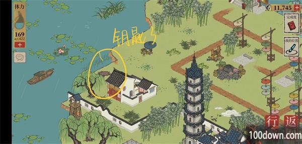 3、钥匙三:找到地图中的宝塔标志性建筑,在左侧住宅与湖中间,找到钥匙三;