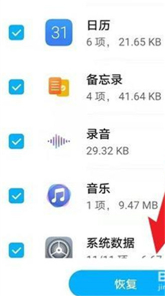 4、然后会进入一个新的页面,在新页面里选择自己想要的恢复数据,点击最下面的【恢复】即可。