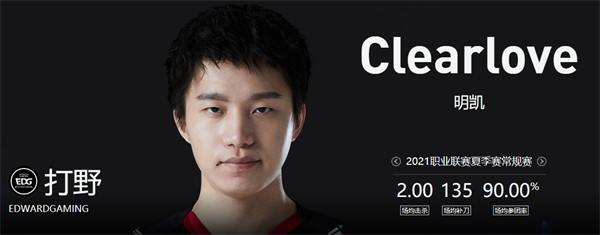 个人履历:Clearlove厂长是一名征战多年的老将,2012年8月正式加入LPL联赛,2012年8月至2014年2月效力于WE战队,2014年2月-2019年12月效力于EDG战队。在2019年12月16日明凯正式转型担任EDG电子竞技俱乐部英雄联盟分部主教练。悉数明凯历史,从他踏入联盟以来已经获得了数不清的荣誉,凭借领导才能和出色的个人技术带领EDG不断前进和超越,如今他已经退役,但是其光辉历史将永远铭刻在EDG的里程碑上。