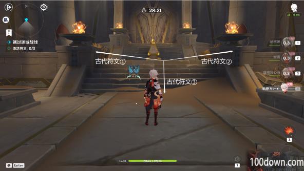 由于推荐队伍配置的输出足够,可直接前往3处古代符文位置