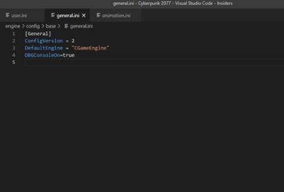 1.首先进入游戏的目录Cyberpunk 2077/engine/config/base 中的“General.ini”文件,通过记事本打开这个文件,直接在里面加入DBGConsoleOn=true,这就是开启控制台的代码;