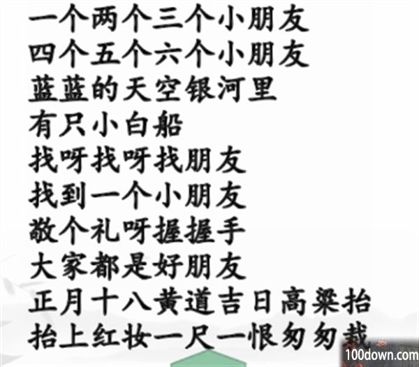 本关考验玩家对于歌词的熟悉度,不熟悉的玩家参考攻略即可。