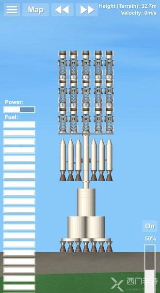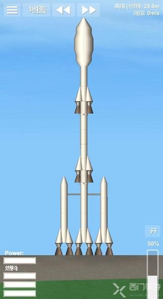 这个火箭是比较简单的火箭样式,里面搭载了一个小型的卫星,超长的燃料箱以及两个辅助的燃料箱提供更多的燃料补给;