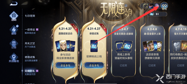 3、在该活动的界面右上角就会有无限连商店,玩家点击打开即可兑换奖励