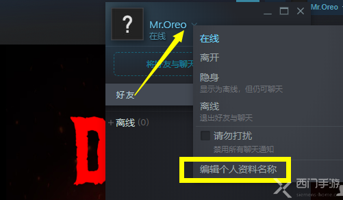 1.游戏内的昵称适合steam账号的昵称相同的,我们只需要修改steam账号昵称即可;