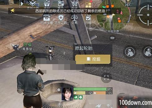 2、走到如图所示的地方,发现轮胎后进行挖掘,即可获得宝藏奖励了。