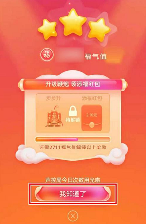 6.游戏结束后就会在界面上结算相应的福气值以及鞭炮进度等,打年兽的声控局一天只能玩3次。