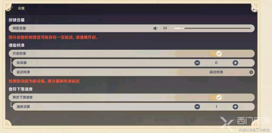 因为每个设备的音画延迟都是不一样的,所以在参加活动之前推荐去设置里边先校准一下,推荐直接去延迟校准旁边的迁往校准,点进去后,可以边体验边校准找到属于自己的校准(校准不是越高越好,也不是越低越好)。