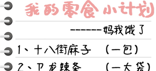 1、零食小计划,妈我饿了,街麻花,卫龙。