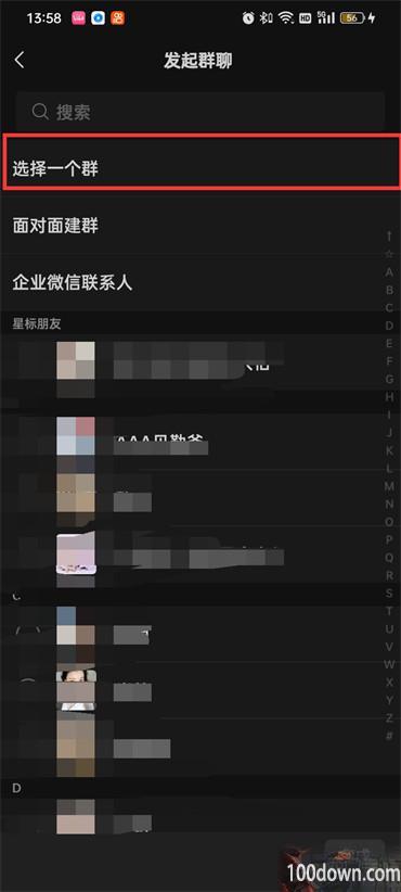 3.进入到发起群聊的页面中点击【选择一个群】;