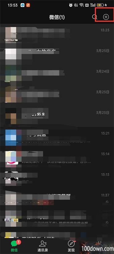 1.首先打开微信软件,进入到主页之后点击右上角的【加号】图标;