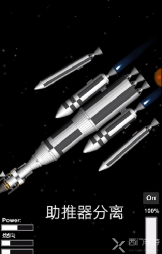 4、当推荐一会后将没有燃料的箱子分离出去,使用全新的燃料箱进行推进;
