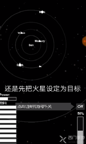 6、之后操控火箭靠近火星的引力范围,这个时候调整火箭的方向,在近地点反向加速;