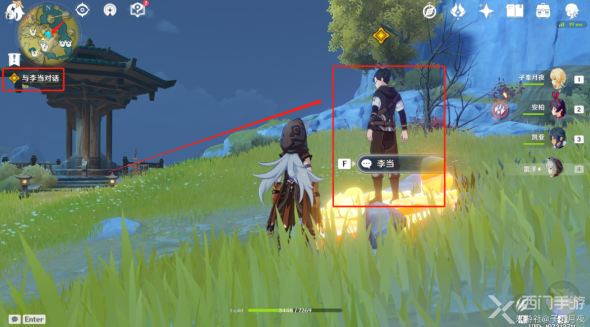 5、最后在亭子那里找到了李当,不过这个位置应该不是固定的,可能其他玩家会在别的地方找到;
