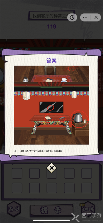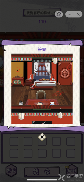 一、图中可以点击的位置如下图所示,玩家按照顺序点击即可过关。