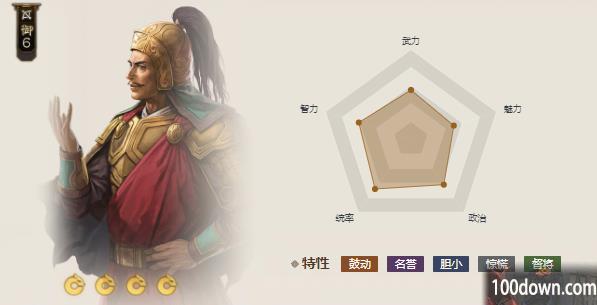 特性:鼓动、名誉、胆小、惊慌、督将