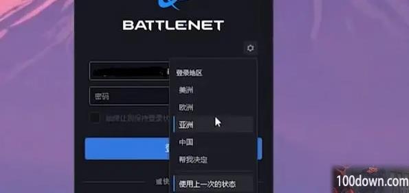 4、切换完成后我们可以启动战网,点击齿轮设置按钮,选择亚洲,输入自己的暴雪战网外 服账号、密码,进行登录即可;
