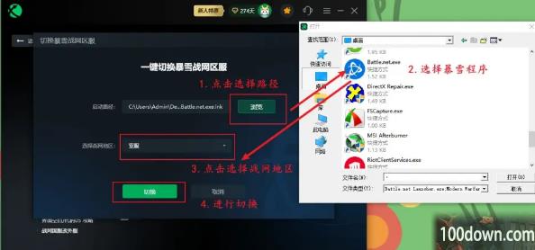 3、根据提示选择暴雪战网的路径、选择将战网地区切换成亚服,之后就可以点击切换了;