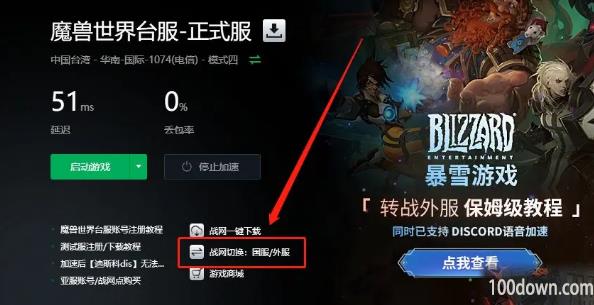 2、领取之后搜索“魔兽世界”,点击“魔兽世界台服”进行加速,加速之后就可以看到战网切换的图标,点击图标进行切换;