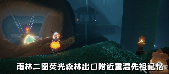 这个先祖的位置是在雨林荧光森林出口左处,玩家过去就可以看到了,触碰先祖开始回忆。