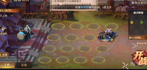 使用唯一一位盾兵武将上场,可将其放置在合适位置;