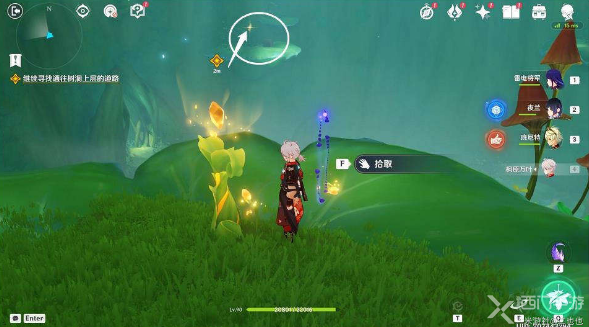 按任务指引路线,清理树洞内的丘丘人,获得宝箱三