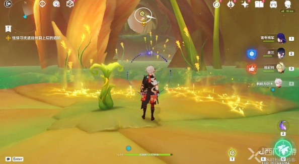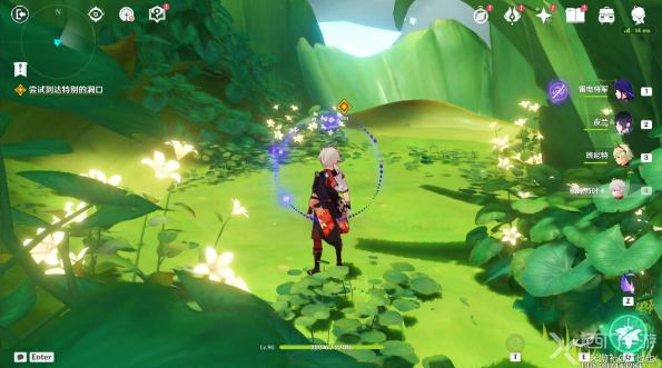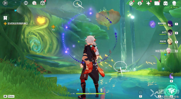 与派蒙对话进入秘境,往地图的东南方向走,前往任务指引位置