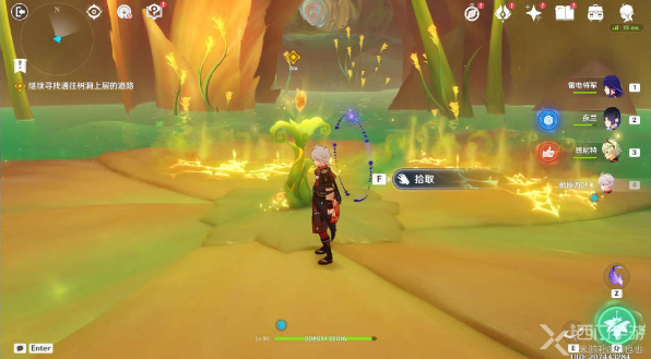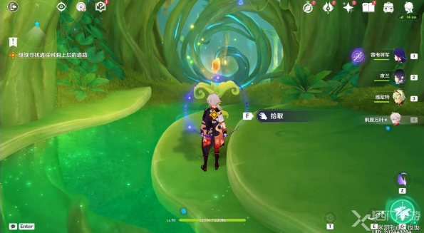拾取「原石松脂」三,使用符印飞到对面平台,获得宝箱四