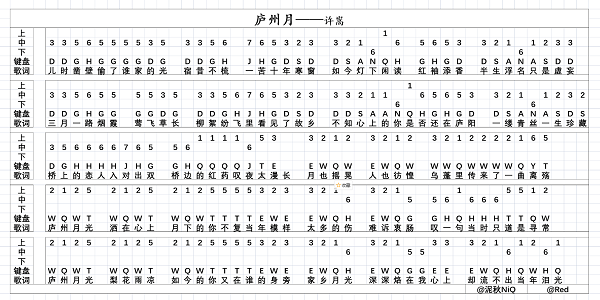 原神庐州月琴谱-原神庐州月手机版电脑版琴谱分享