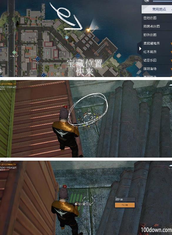 玩家来到杜克港口右上角的河边(2571,-4586)位置,在集装箱旁边会有一堆奇怪的石头,玩家靠近挖掘可以找到保险箱,打开保险箱就可以找到宝藏了。