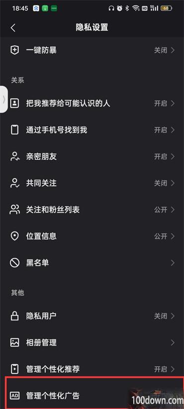 4.进入到隐私设置的页面中点击【管理个性化广告】;