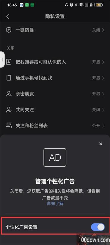 5.最后在页面下面弹出的对话框中点击关闭【个性化广告设置】即可;