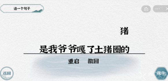 在一字一句游戏中会有很多关卡,其中在造句噶猪关卡中,玩家也是需要来造句的,这一关没有需要改变的字,还是比较简单的,有玩家还不知道这个关卡怎么完成,接下来小编为大家带来了详细介绍,希望可以帮助到大家。
