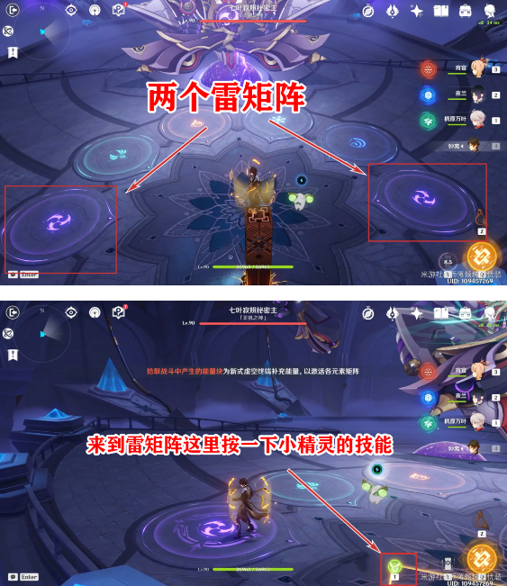3、最后,继续捡护盾充能小精灵,然后去另一边的雷绝阵再次使用小精灵技能,就能获得成就了。