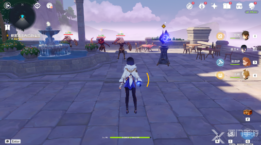 5、坐电梯上去后,往直路走,途中击败3个丘丘人;