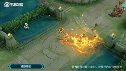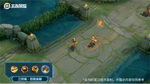 经典的耍猴棍,结合金光附体,紧箍圆环环绕四周;一技能触发,齐天大圣旗帜护体。