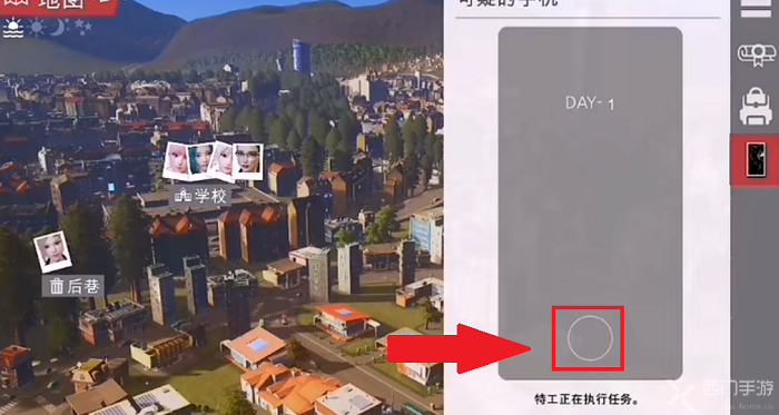 1、进入特工17游戏,在右侧的菜单按钮中,点击“可疑的手机”图标;